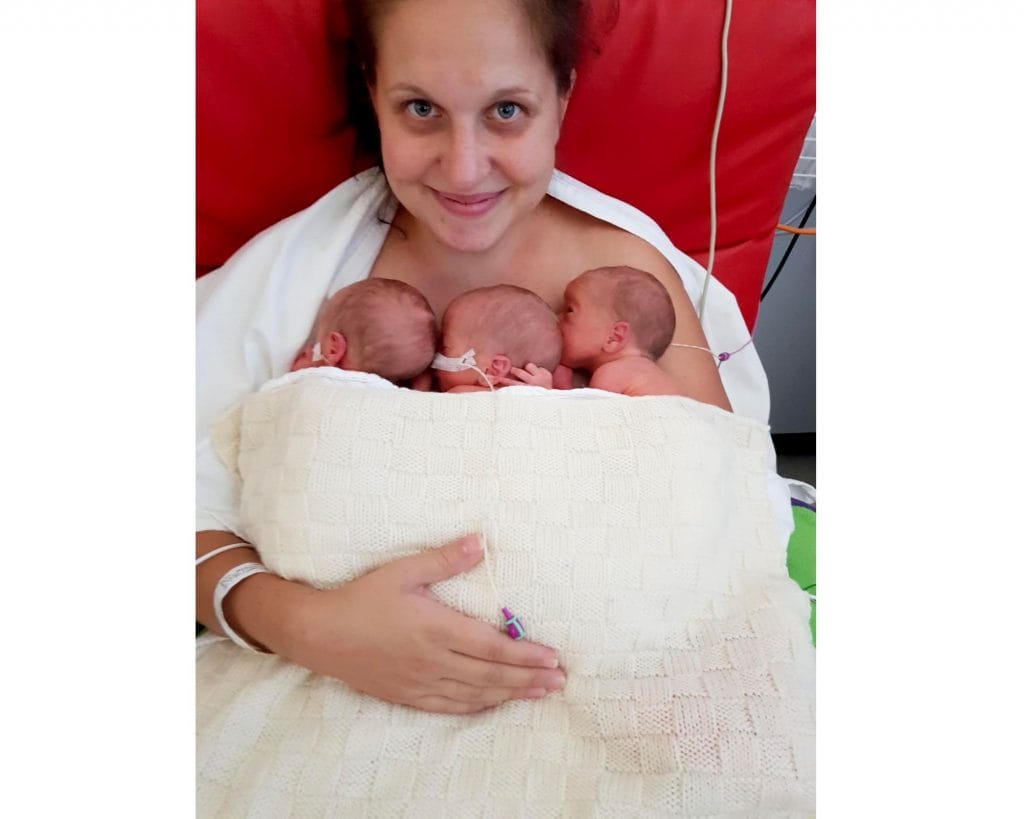 On April 4, 2019, when Kasey was almost 33 weeks pregnant, the triplets arrived prematurely.